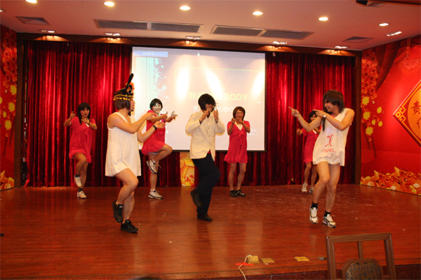 上拾石总经理和大家一起回顾了2010年JGZ的经营业绩并对2011年提出了新的期望,对全体员工及其家属寄语良好的祝愿。在共同举杯欢庆后忘年会正式拉开序幕,伴随着乐队表演,春江花月夜,黄梅戏,天竺少女等一个个节目的呈现,现场欢声笑语不断,去年“如花”的续篇“NOBODY”将晚会推向了高潮…。