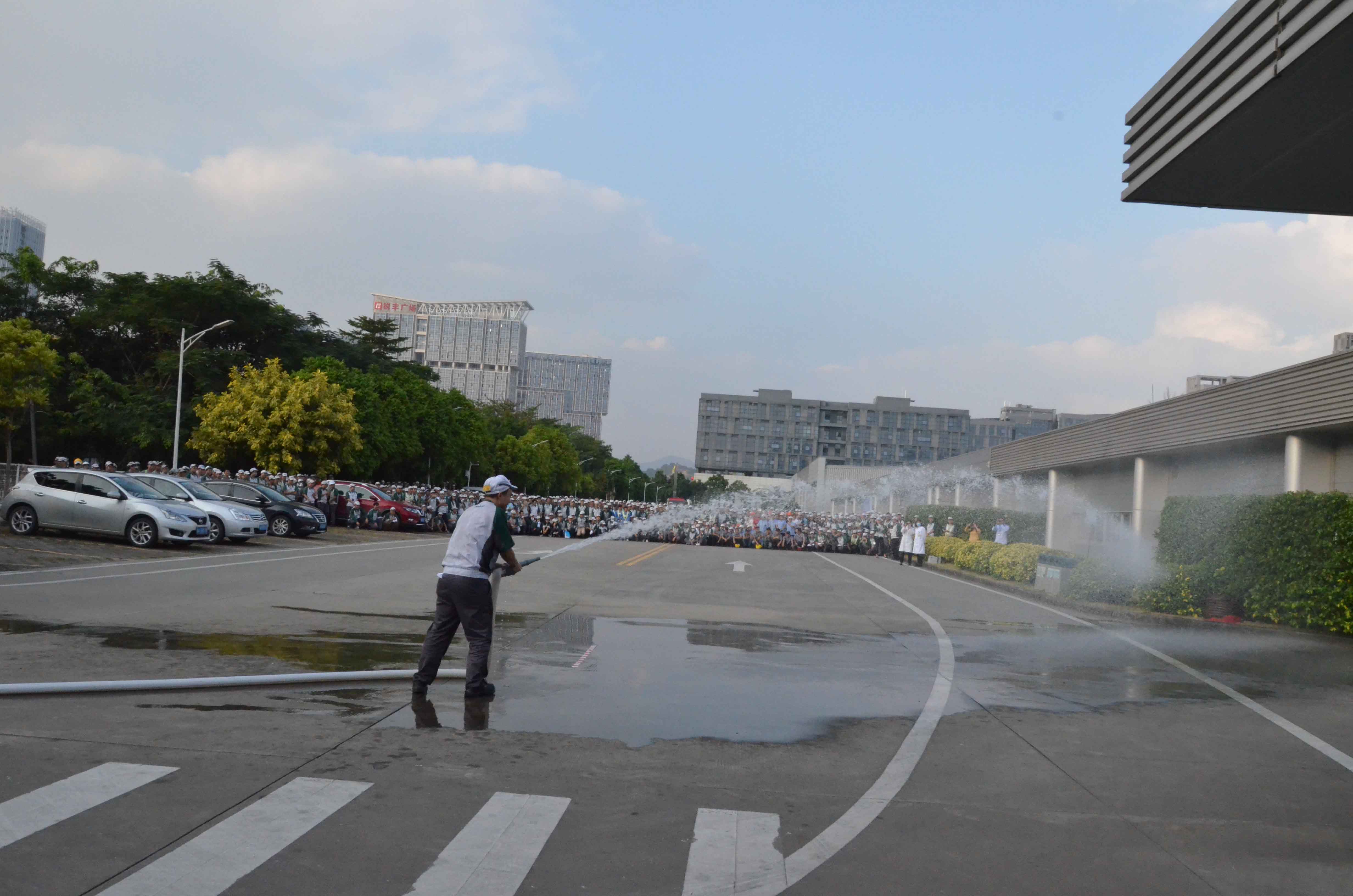 本年度11月9日消防日当天,安健科对公司本年度的消防安全的一系列主题活动进行了介绍, 公司如往年一样,进行了逃生演练活动,听到广播后大家迅速有序撤离工作岗位,去往紧急集合场所避难。大家都拿着萝岗街道派发的小手帕捂着口鼻迅速撤离,另外,有赖萝岗街道办与政府消防部门的支持,为了模拟真实场景,保持紧张感,还特地增派了消防车配合加特可广州的消防演练,萝岗街道办的领导在逃生演练后还做了讲话,更显政府对公司消防安全业务给予的大力支持。