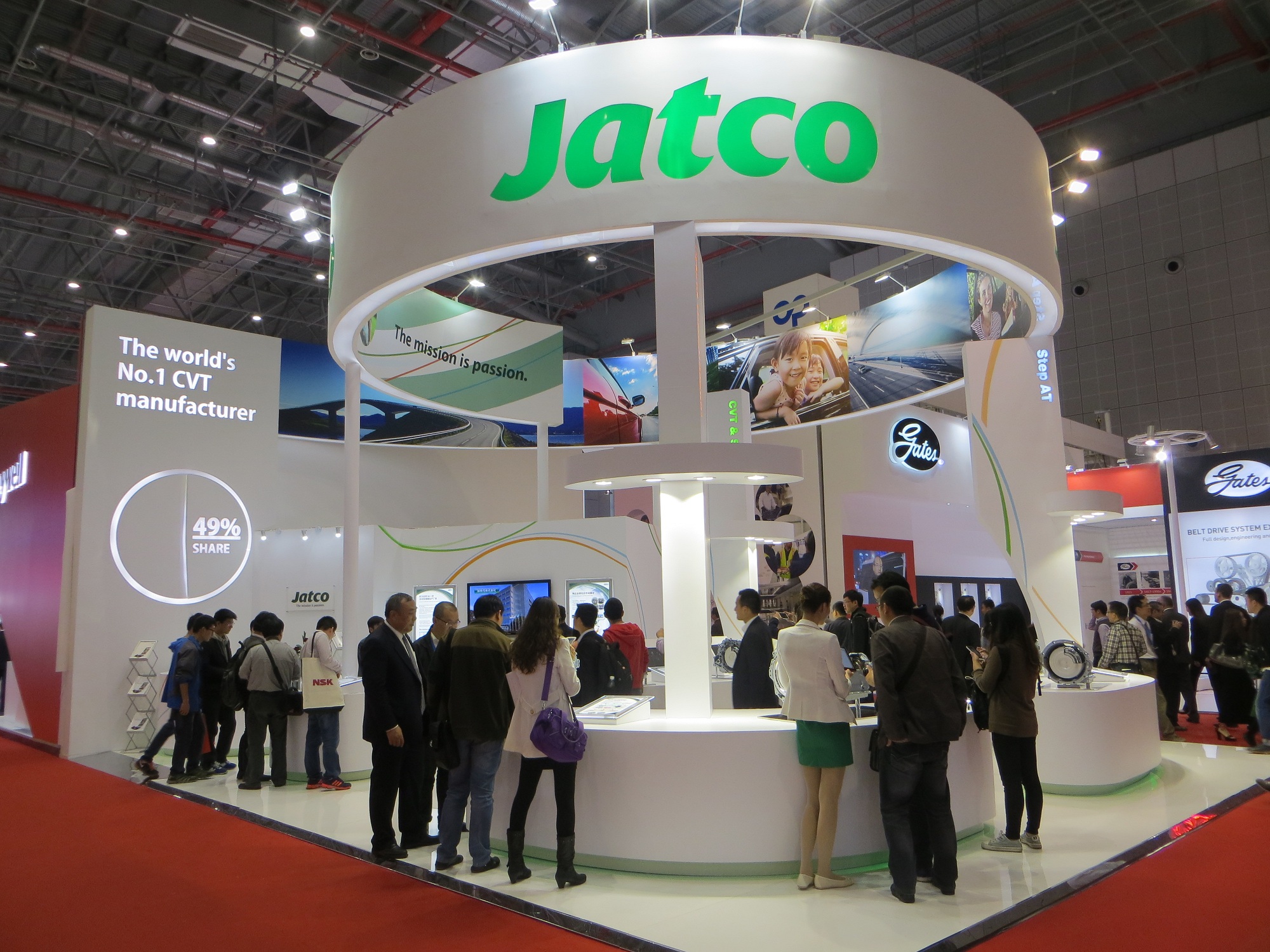 在本次车展中,加特可展出了市场份额稳居全球第一的CVT(无级自动变速箱:Continuously Variable Transmission)最新产品Jatco CVT7、Jatco CVT8;在中国市场博得好评的小型FF车用新4速AT,中大型FR车用5速AT、7速AT;以及世界首发的采用1个电机2个离合器结构的混合动力FR车用变速箱,以Jatco CVT8为基础,内置了驱动、再生用马达和用于接续、分离发动机动力的离合器CVT8 hybrid等。加特可展位在出展期间受到了众多媒体、学校、协会、客户群、供应商等机构和人员的关注。